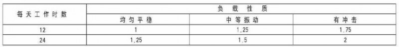 用戶可根據(jù)實際工作制和負載性質(zhì)參照服役系數(shù)表,計算后確定減速電動機的功率與型號。